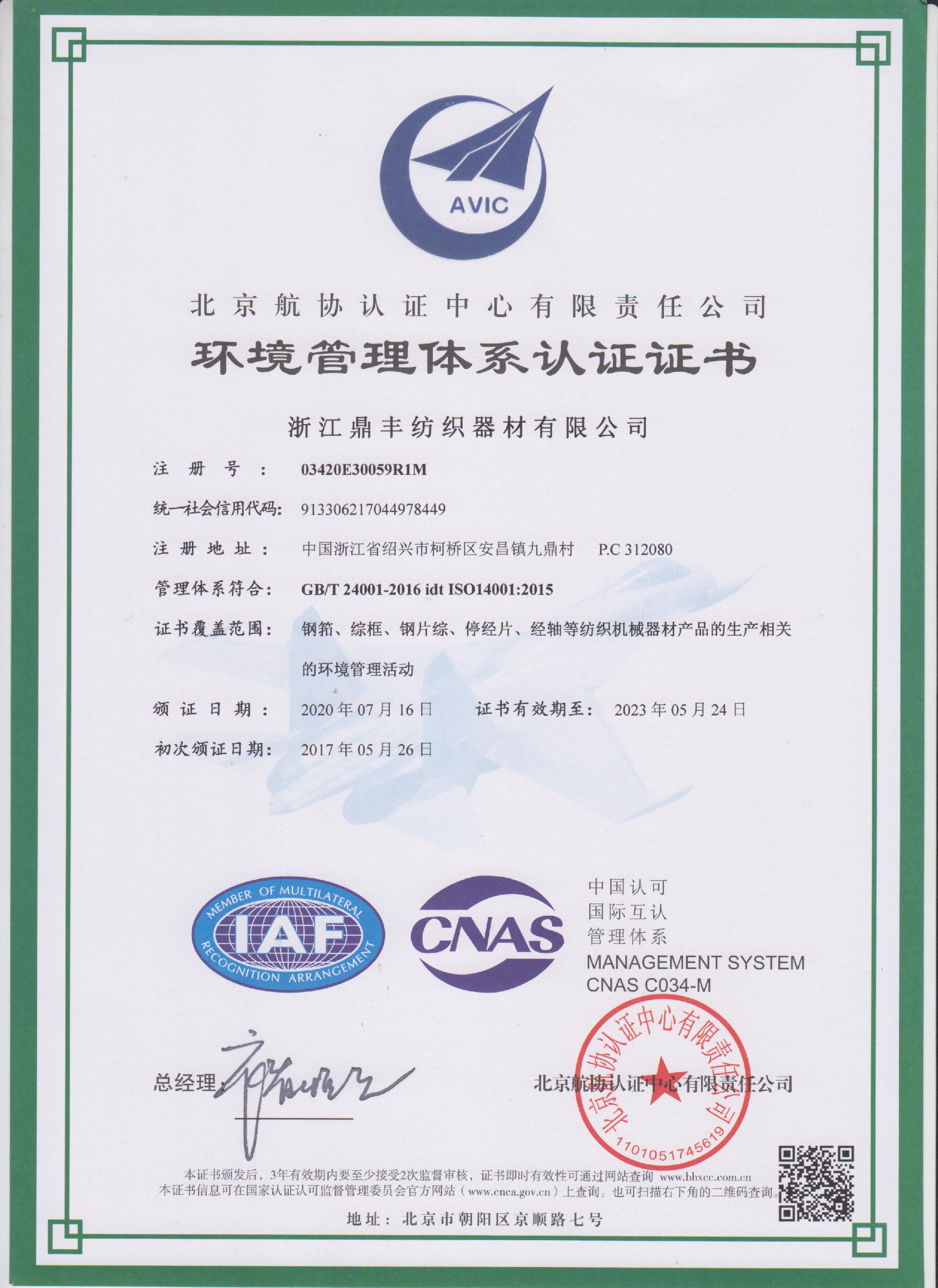 浙江鼎丰纺织器材有限公司始建于1986年,是一家专业生产各类无梭织机用钢筘:喷气筘、喷水筘、剑杆筘、其他类型钢筘;铝合金综框、钢片综、停经片、经轴、织轴、卷布辊等产品及配件的民营企业。