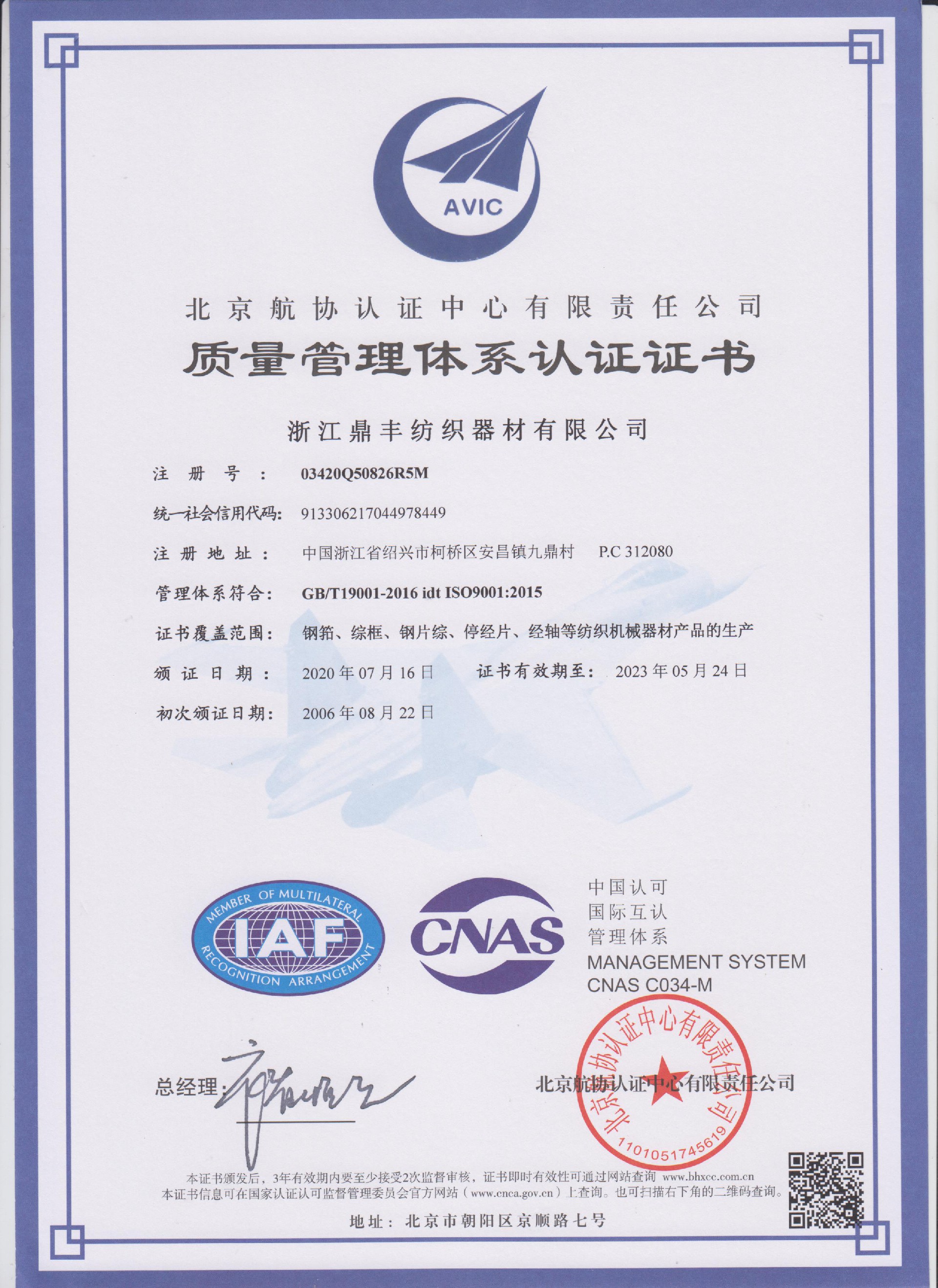 1、贵公司是一家专业生产各类无梭织机铝合金钢筘、综框、钢片综、停经片、经轴、织轴和卷布辊等产品及配件的民营企业。公司成立30多年迅速发展、占领市场的秘决是什么?余定雅:是高品质的产品,完善的售后服务和大规模的生产能力保证了浙江鼎丰纺织器材有限公司的产品销售量在国内独占鳌头。为了与全球市场经济接轨,鼎丰纺
